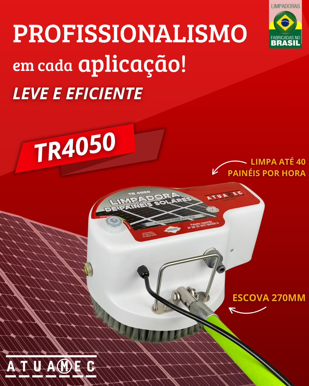 Painéis solares limpos são sinônimo de mais energia e mais economia no seu bolso.A Limpadora TR4015 foi desenvolvida especialmente para remover de forma rápida e eficiente a poeira, resíduos e sujeiras que...